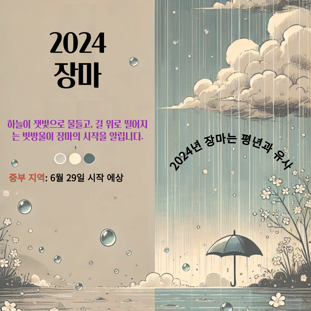 - 계절성: 장마는 주로 여름철에 발생합니다.