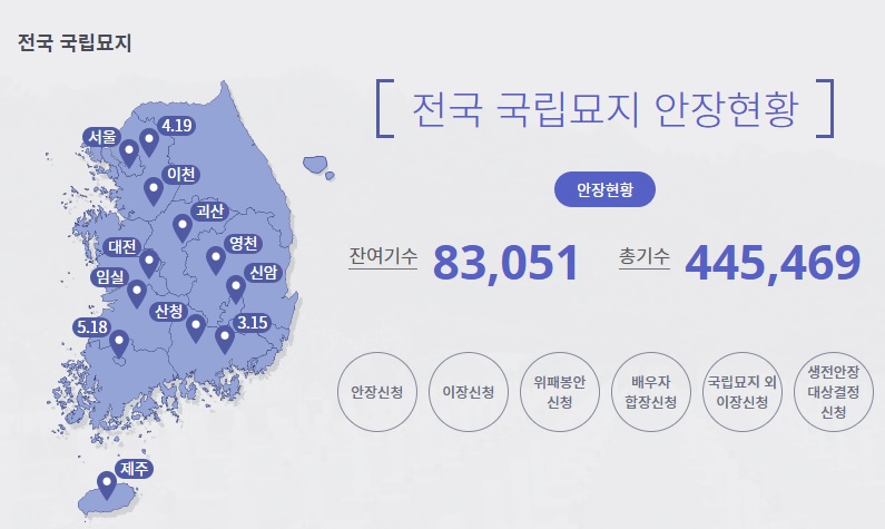 - 사이버 참배: 시간과 공간의 제약으로 자주 방문하지 못하는 유가족 및 일반인들을 위해 온라인으로 안장자 및 추모장소(탑, 제단)에 참배드릴 수 있도록 만든 온라인 서비스입니다. 사이버참배는 '안장자참배', '추모탑 참배'로 나누어지며 참배 후 하늘편지에서 추모의 글을 남기실 수 있습니다. 약 1분 정도의 시간이 걸리는 간단한 방식의 참배이므로 오늘의 우리가 있도록 하여 준 분들에게 일년에 1회 정도 컴퓨터 앞에서, 스마트 폰으로 참배를 할 수 있으면 좋겠습니다.