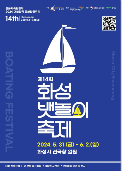 | 화성 뱃놀이 축제 | 요트 승선 체험, 해상 파티 프로그램, 야간 프로그램 등 일정: 2024.5.31 - 6.2 |