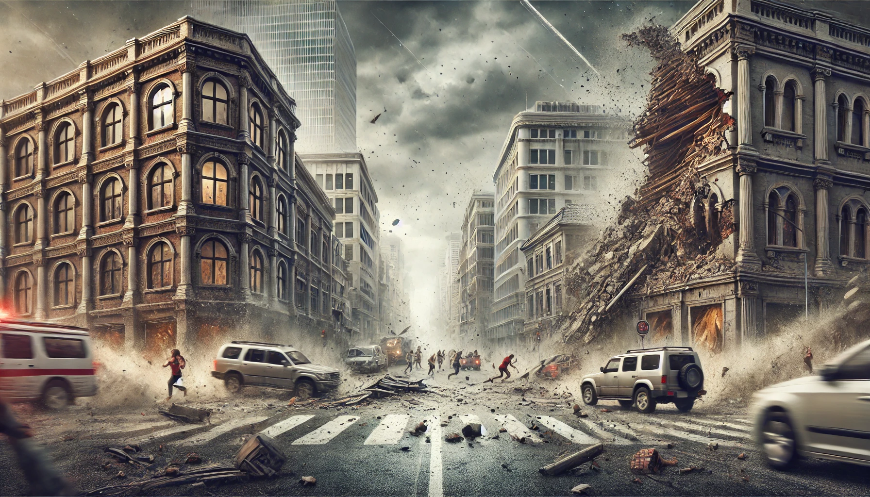 ○ 매우 강한 지진: 건물들이 붕괴되거나 큰 지진이 발생하여 산사태나 균열이 발생하는 상황