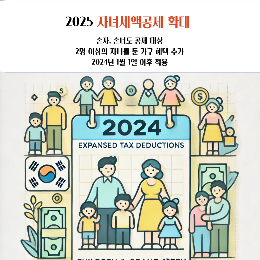 2024년 세법 개정으로 자녀세액공제가 한층 강화되었습니다. 특히 손자녀가 공제 대상에 추가되고, 출산·입양 공제가 확대되면서 많은 가정이 절세 혜택을 누릴 수 있게 되었는데요. 이번 글에서는 자녀세액공제의 다양한 케이스와 계산 방법을 상세히 안내해 드리겠습니다. 모든 사례를 체계적으로 정리했으니, 연말정산 준비에 활용해 보세요.