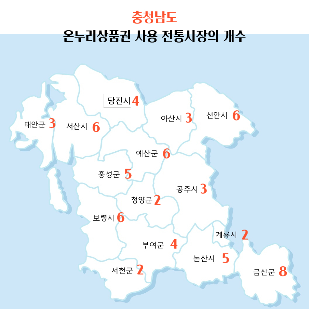 | 당진시 (4) | 당진전통시장, 합덕전통시장, 합덕중앙상점가, 당진원시가지상점가 |