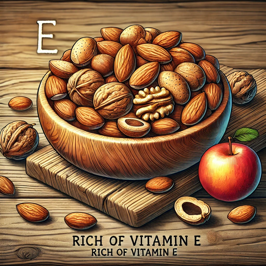 - 비타민 E가 포함된 아몬드, 호두 등 견과류