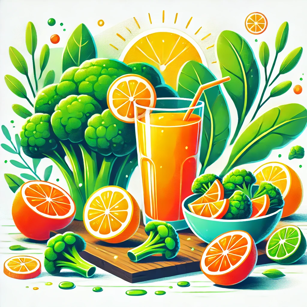 - 비타민 C가 풍부한 오렌지, 레몬, 브로콜리 등 과일과 채소