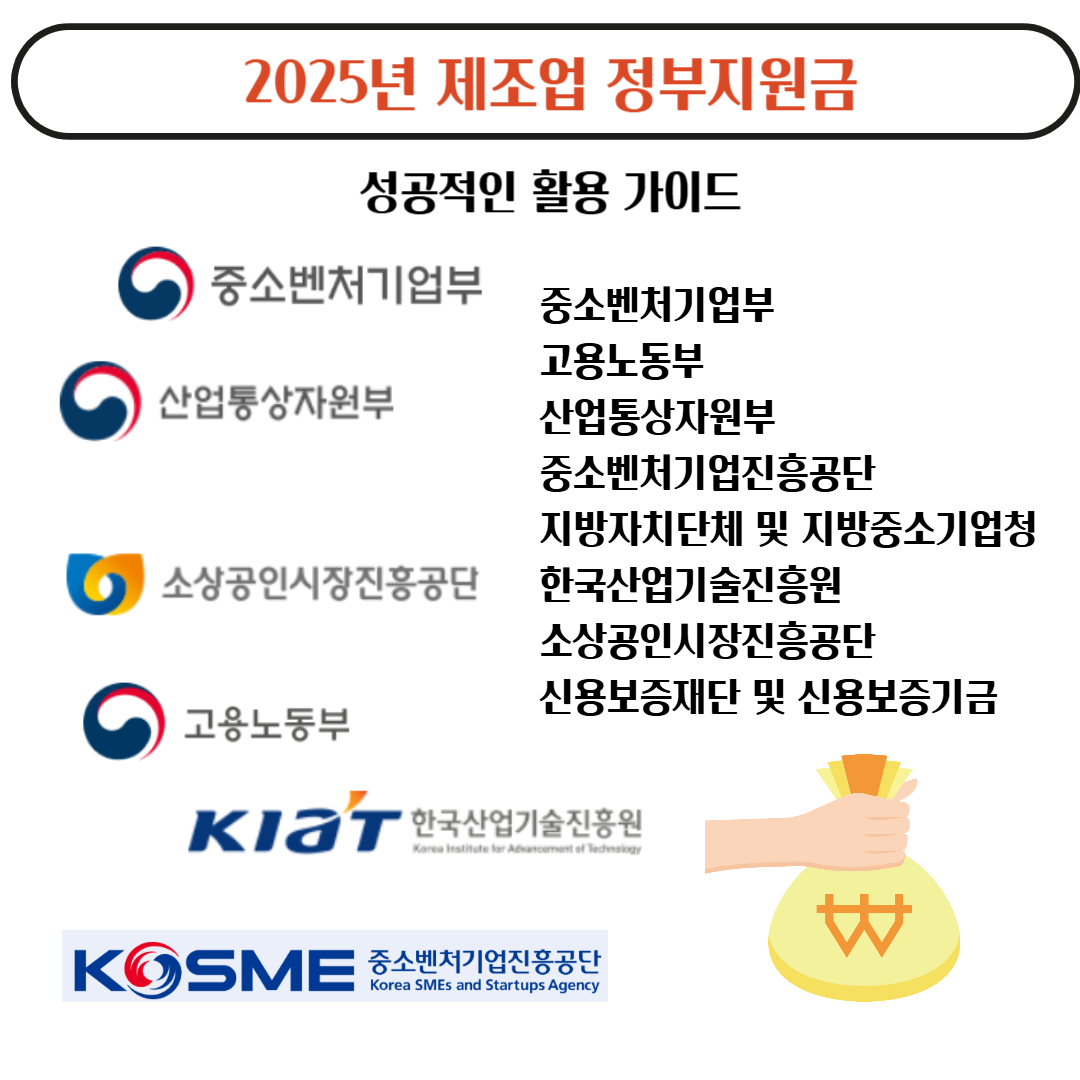| 지방자치단체 및 지방중소기업청 | 지역 특화 산업 육성, 성장기반자금 지원 | 지역 기반 제조업체 |