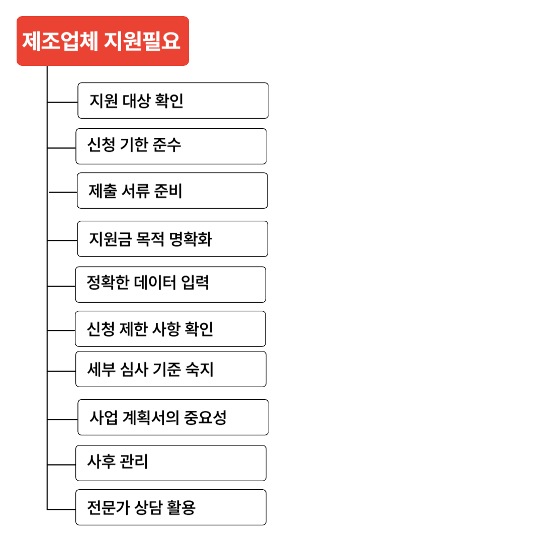 위 유의사항을 꼼꼼히 확인하고 철저히 준비하면 제조업 지원금 신청 성공률을 높일 수 있습니다.